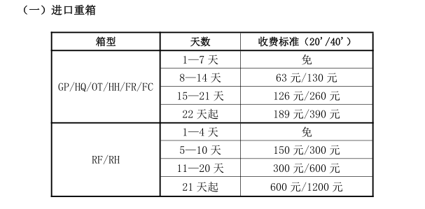 The container size table can be used as a reference; the storage fee is charged by the terminal, and the standards of each port are different, the actual situation shall prevail!
